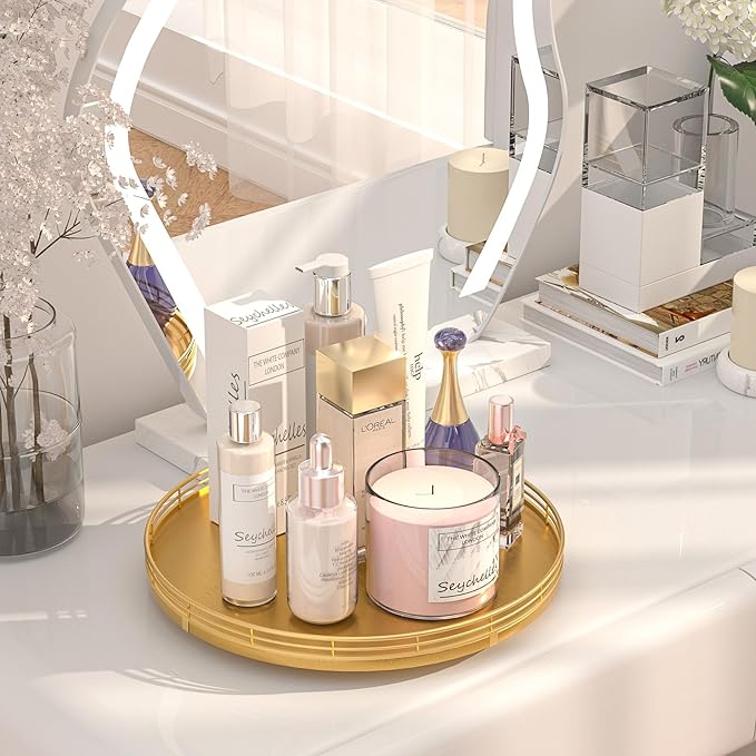 - Thoughtful Design: The turntable gold tray features a smooth and silent 360°rotation; Bottom slip-resistant pads for stability and protect your countertop from scratches; Raised edges on each organizer tray to keep items from falling out; Easy to use, no installation required