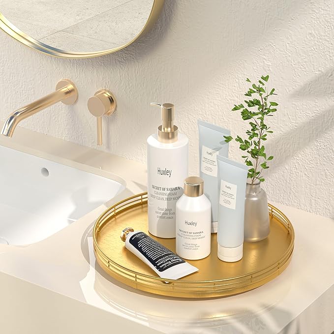 - Multi-Purpose Usage: Perfect for a wide range of occasions and spaces. Whether used as a centerpiece table decorations, a vanity tray in your bathroom, or an organizer on your kitchen, this versatile gold round tray adapts to your needs in any room