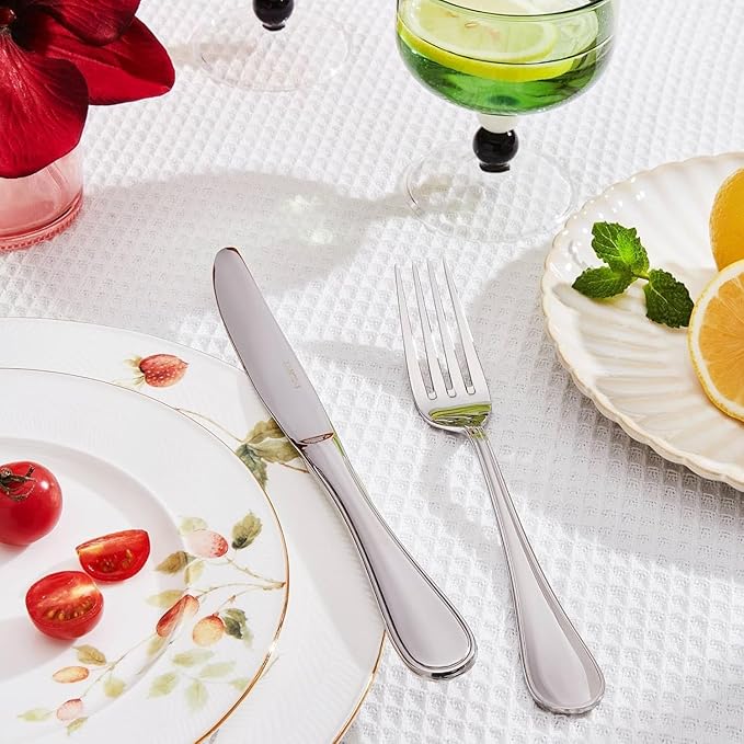 - Excellent Design & Polishing: Design of the silverware set is classic and timeless, with unique shapes and smooth lines,which can be perfectly matched with your existing flatware sets. Multiple times of hand polishing gives it shiny luster after long time use, making it a good choice for gifts