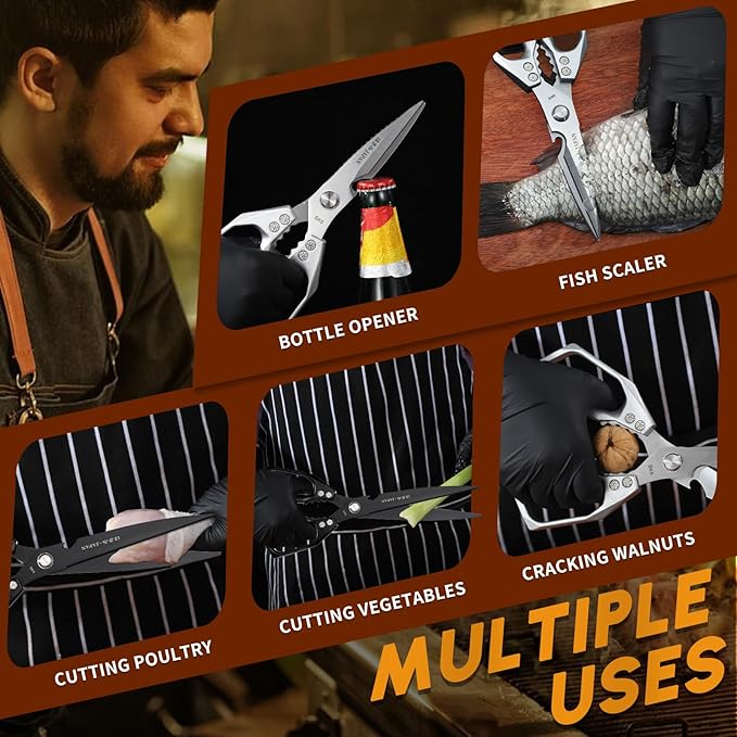 - Gift-Ready & Kitchen-Chic--Presented in a gift box. More than meat cutting scissors: A thoughtful upgrade for grill masters, new homeowners, or busy parents. Ideal for Christmas/Father’s Day/Thanksgiving.