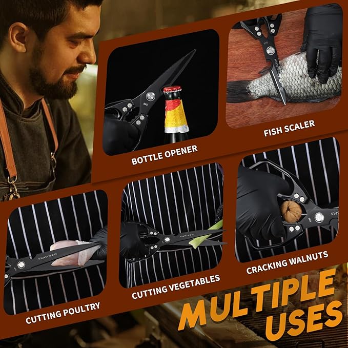 - Versatile Kitchen Tool--These Huusk professional kitchen scissors are not limited to chicken bones—they are perfect for cutting through a variety of tough foods such as fish bones, lamb bones, pork bones, and more. With sharp, heavy-duty blades, they are a versatile addition to any kitchen, making meal preparation faster and more efficient.