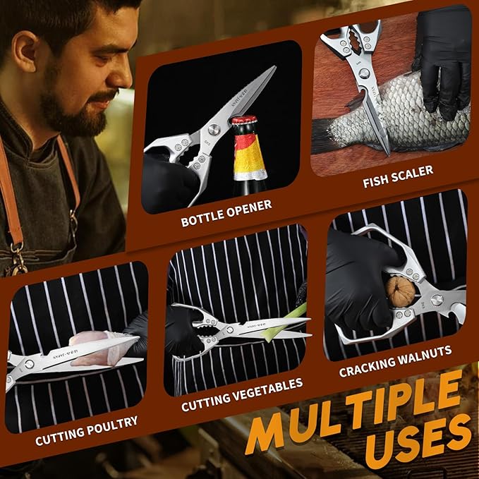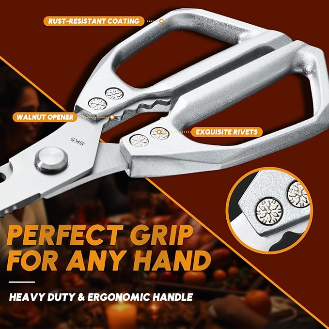 - Gift-Ready & Kitchen-Chic--Presented in a gift box. More than meat cutting scissors: A thoughtful upgrade for grill masters, new homeowners, or busy parents. Ideal for Christmas/Father’s Day/Thanksgiving.
