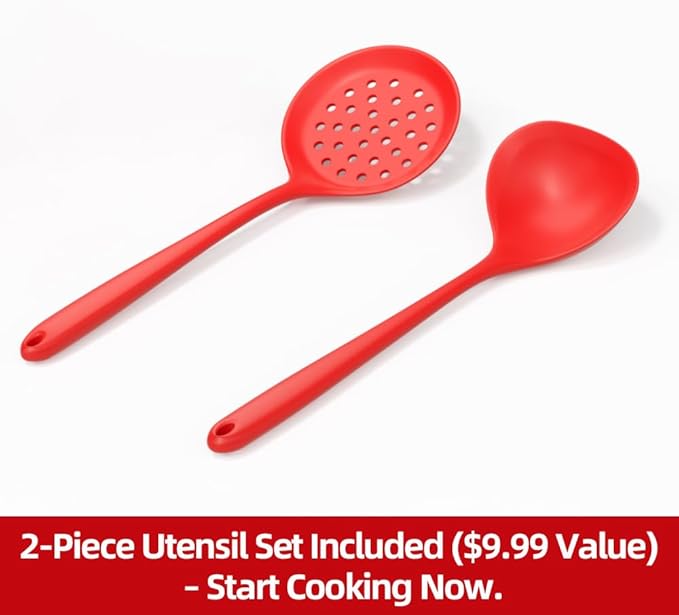 - 🧂 Complete Kit for Seamless Hosting - Includes Soup Ladle & Strainer Spoon! Serve and skim like a pro! The included food-grade soup ladle scoops deep broth portions safely, while the large-hole strainer spoon effortlessly retrieves tofu, wontons, or veggies without messy spills. Everything included for fun, fuss-free dining!