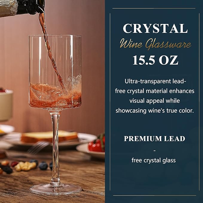 MICHLEY Square Crystal Wine Glasses Set of 2-15.5 oz large Long Stem Glassware Red/White Glasses Drinkware Perfect Gifts for Women, Wedding,Birthday Decorations