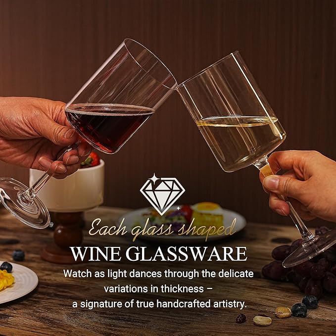 - HAND-BLOWN-Using traditional hand-blown craftsmanship, each glasswear is unique, the cup body is crystal clear, the lines are smooth, showing elegance and artistic sense, adding a touch of refinement to your dining table
