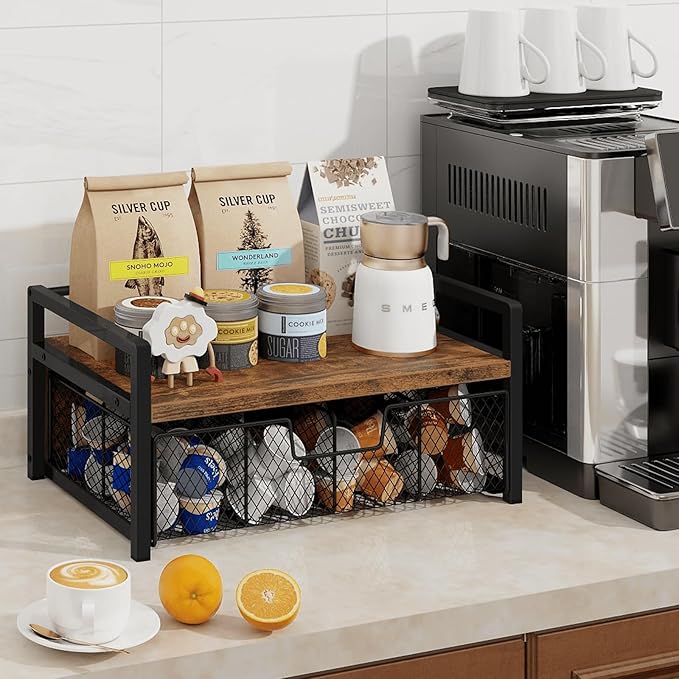 - Multi-Functional & Durable: This versatile storage rack is made from high-quality particleboard and a reinforced, widened metal frame, built to last, mildly waterproof, and easy to clean. It is not just for tea bags but can also be used to store coffee capsules, k cups in a coffee bar, or organize spices in the kitchen
