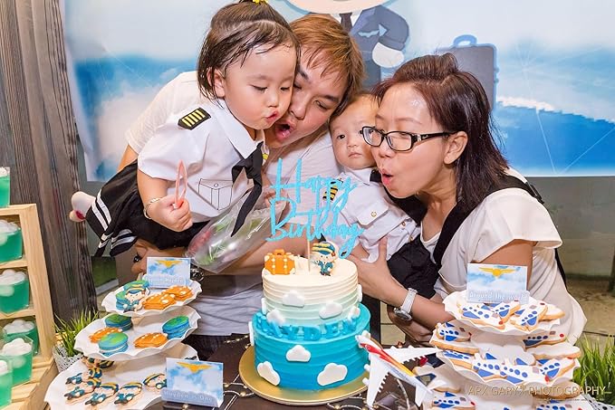Happy Birthday Cake Topper - Glitter Light Blue Birthday Cake Top Decorations (Light Blue)