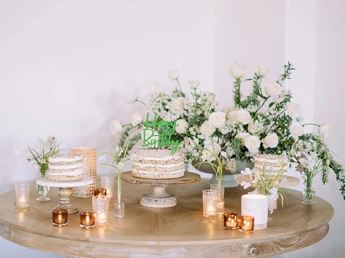 Happy Birthday Cake Topper - Glitter Green Birthday Cake Top Decorations (Green)