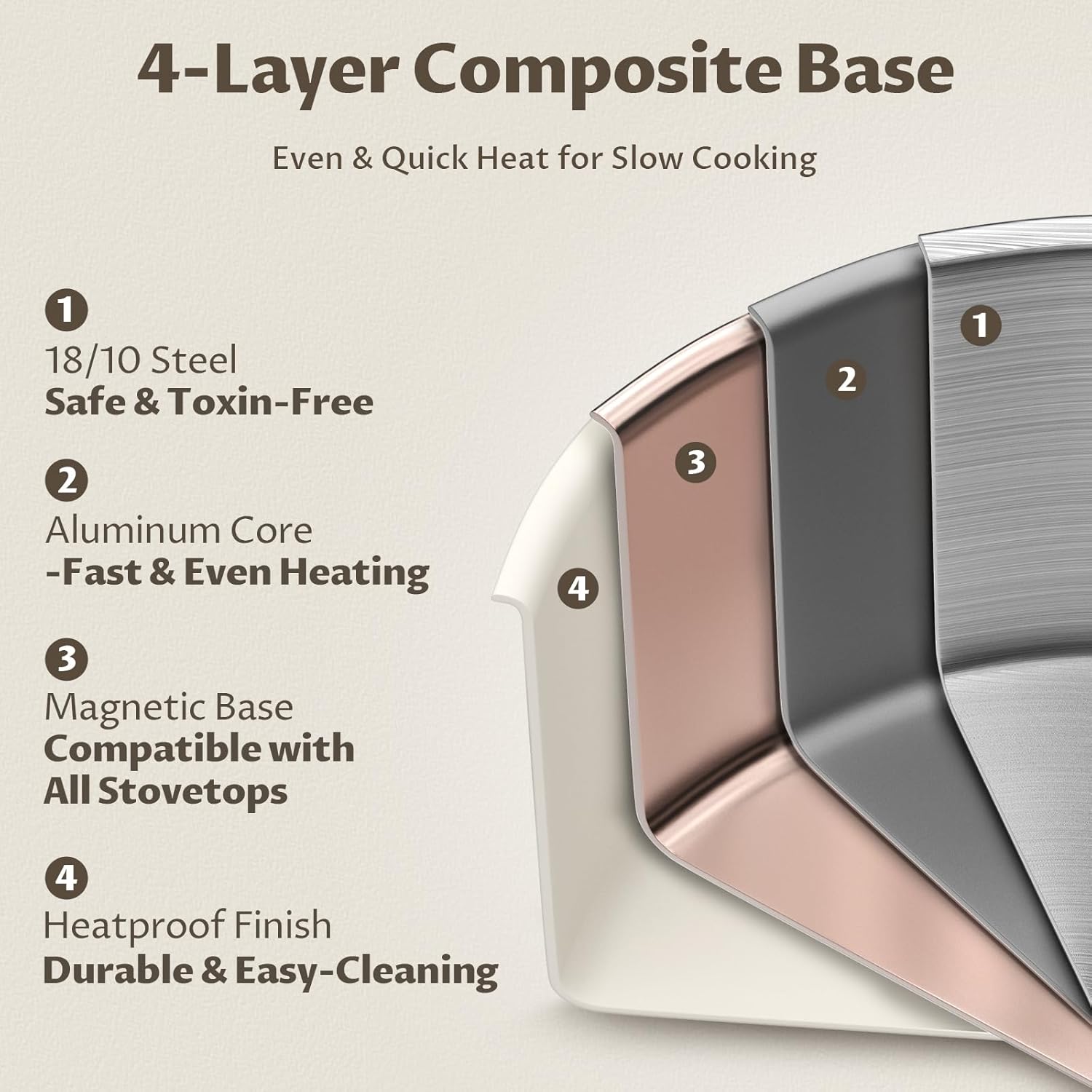 - ๐๐ฅ๐ฅ ๐๐ญ๐จ๐ฏ๐๐ญ๐จ๐ฉ๐ฌ & ๐๐ฏ๐๐ง-๐๐๐๐๐ฒ: A versatile induction pot compatible with gas, electric, and induction cooktops. Oven-safe (up to 450โ) for braising, baking, or making casseroles