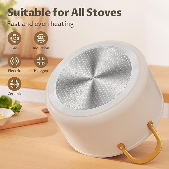 - 【𝐄𝐟𝐟𝐢𝐜𝐢𝐞𝐧𝐭 𝐇𝐞𝐚𝐭𝐢𝐧𝐠, 𝐄𝐧𝐞𝐫𝐠𝐲 𝐒𝐚𝐯𝐢𝐧𝐠】 Aluminum core has excellent heat conduction, and with the triple-layer pan bottom, the heat conduction is 35% more even. Cooking saves more time and up to 45% energy consumption, allowing you to enjoy delicious food faster