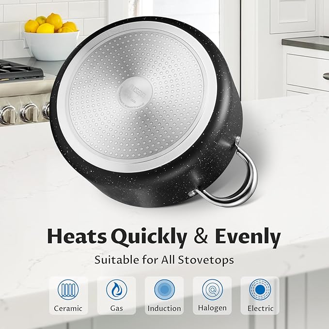 - ๐๐๐ฌ๐ฒ ๐ญ๐จ ๐๐ฅ๐๐๐ง: The ultra non-stick granite coating prevents food and sticky sauces from sticking and burning to the stock pot, making cleaning a breeze