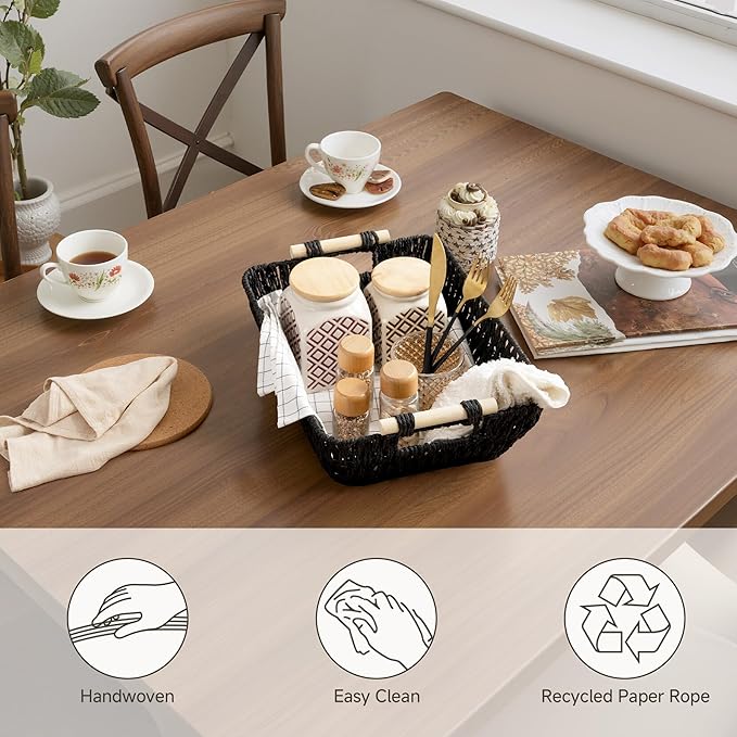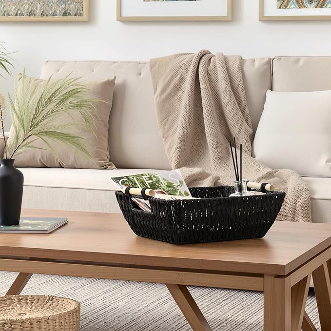 StorageWorks Large Wicker Storage Basket for Organizing with Wooden Handles, Toilet Paper Baskets for Bathroom, Black, 2-Pack