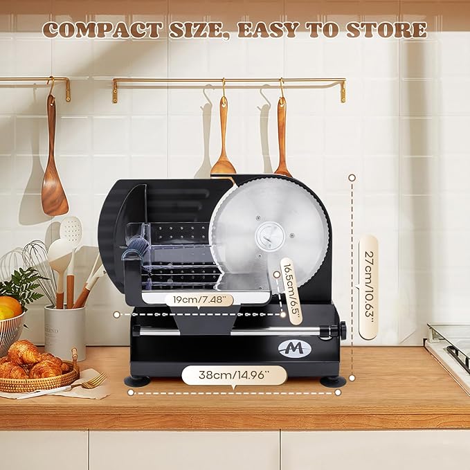 - Enhanced Safety Protection The electric slicer’s food pusher provides an extra layer of protection, keeping hands safely away from the sharp blade. Non-slip feet ensure stability during use, preventing the slicer from moving or slipping during use. The food slicer’s safety design meets your slicing needs while minimizing potential hazards, giving you peace of mind when preparing meals.