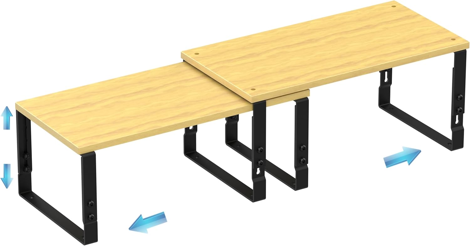 Expandable Kitchen Cabinet Organizer Shelves – Stackable Adjustable Metal and Wood Storage Racks for Countertop, Pantry, Garage Set of 2 Spice Rack – Easy Assembly, Space-Saving(1 Pack/Large/Black)