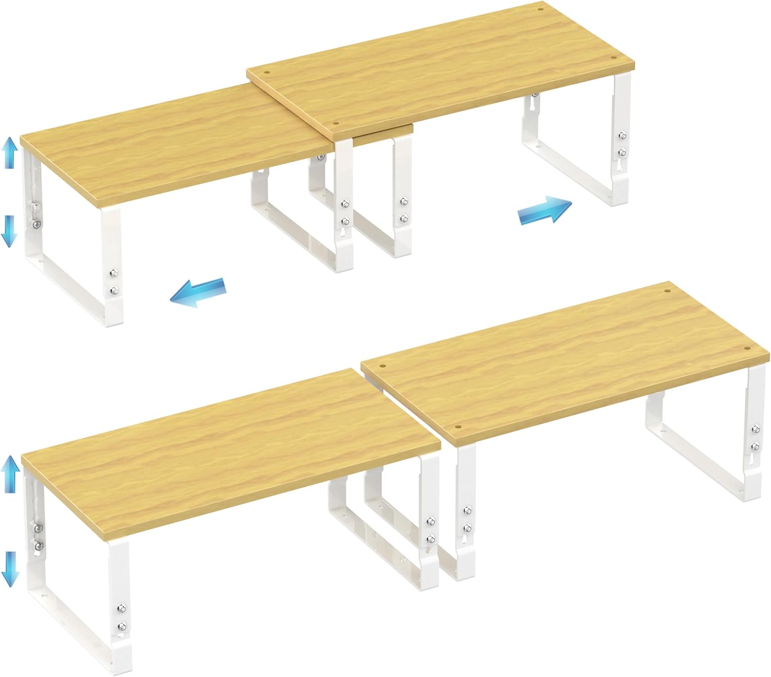 Expandable Kitchen Cabinet Organizer Shelves – Stackable Adjustable Metal and Wood Storage Racks for Countertop, Pantry, Garage Set of 2 Spice Rack – Easy Assembly, Space-Saving(2 Packs/Large/White)