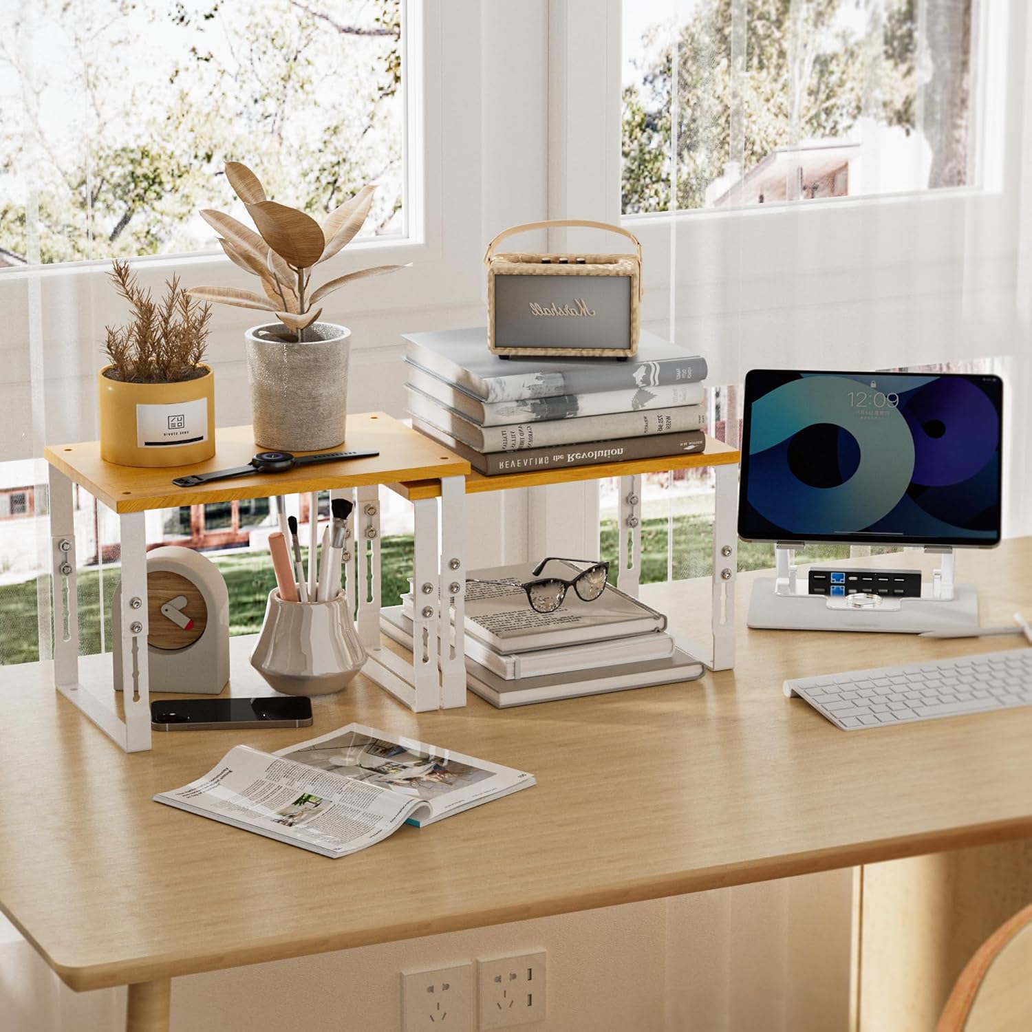 Expandable Kitchen Cabinet Organizer Shelves – Stackable Adjustable Metal and Wood Storage Racks for Countertop, Pantry, Garage Set of 2 Spice Rack – Easy Assembly, Space-Saving(1 Pack/Medium/White)