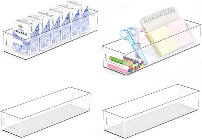 - Flexible Organization: plastic storage boxes can maximize your space, ideal for organizing fruits, canned food, yogurt, snacks, toys, drink boxes.