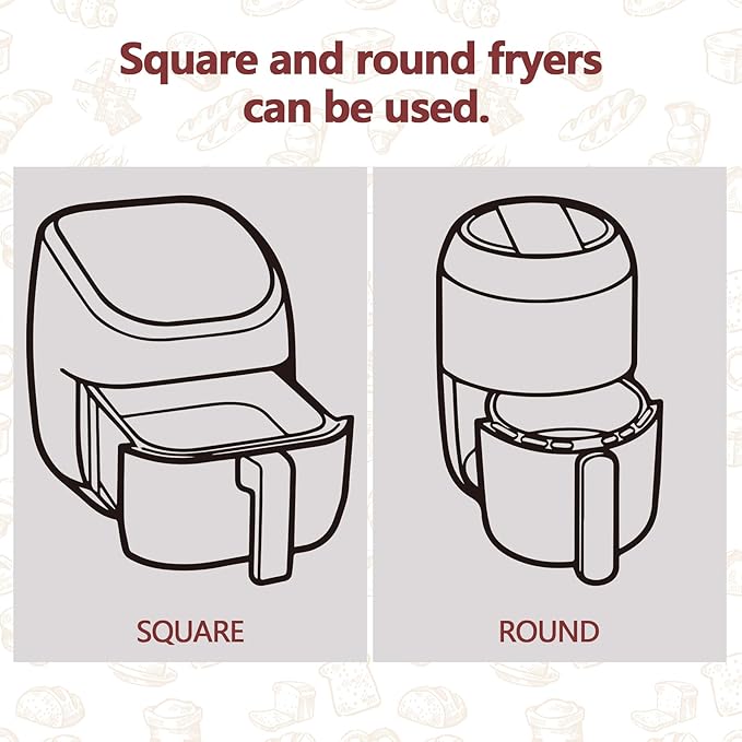 - 【Non-Stick & Oil-Free Cooking】 Enjoy healthier meals with our air fryer liners! The non-stick surface prevents food from sticking, allowing you to cook with little to no oil while keeping your air fryer basket clean.