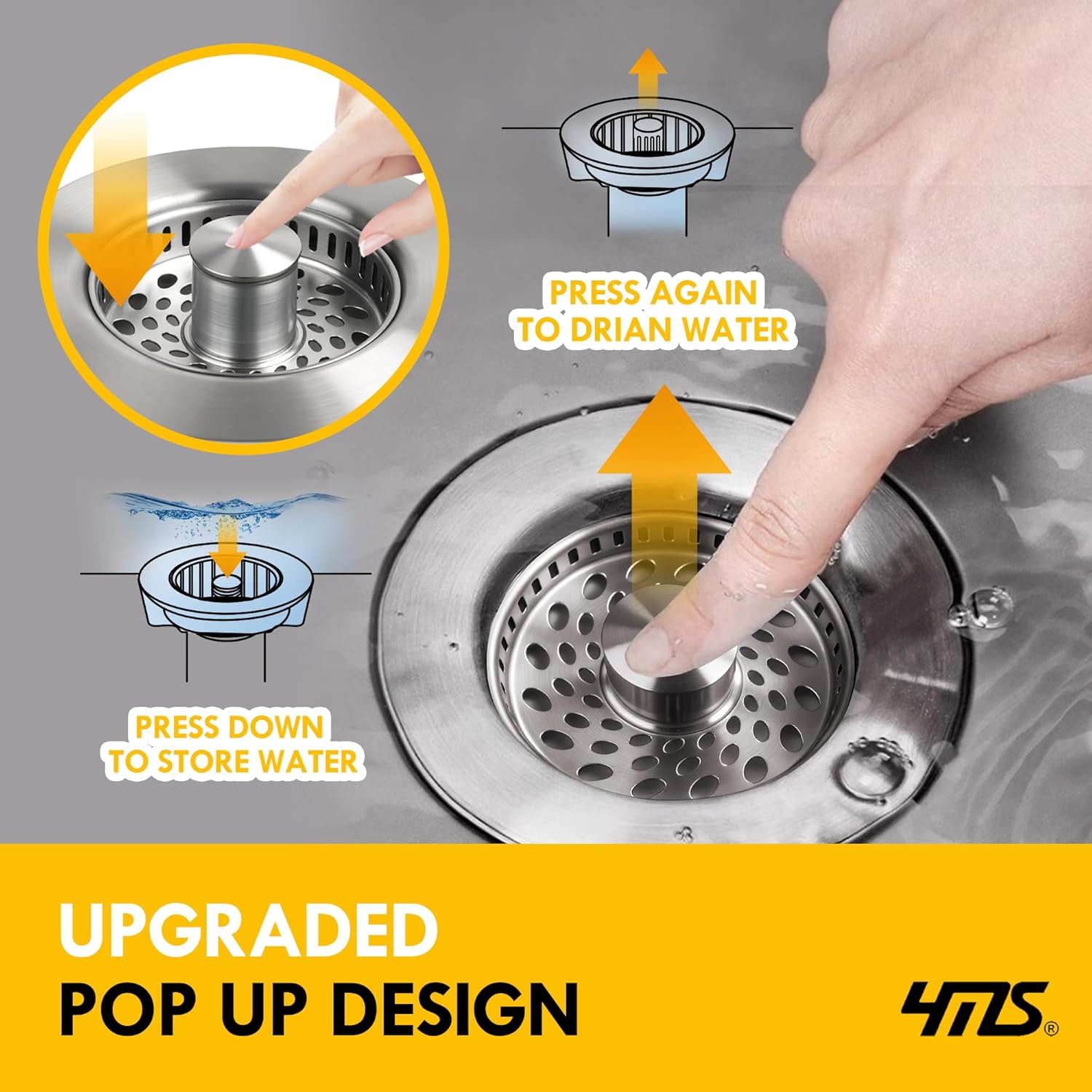 5-in-1 Stainless Steel Sink Aid, Kitchen Sink Drain Strainer Food Catcher, Popup Kitchen Sink Stopper & Odor Filter, Kitchen Sink Strainer Accessories with Drain Basket (Classic Brushed)
