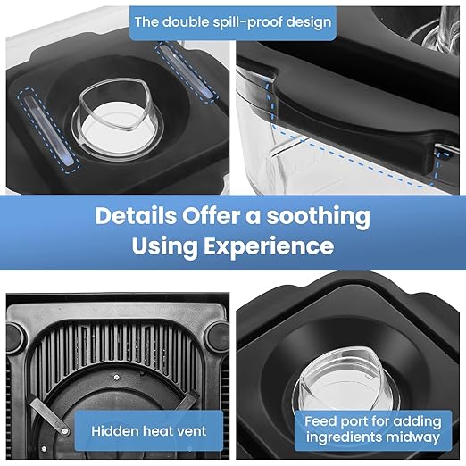 - NOISE CONTROL — SYBO blender, with a 4D system, advanced noise reduction & smart tech, suits commercial kitchens. Its 48oz pitcher handles smoothies, nuts, shakes & ice crushing.