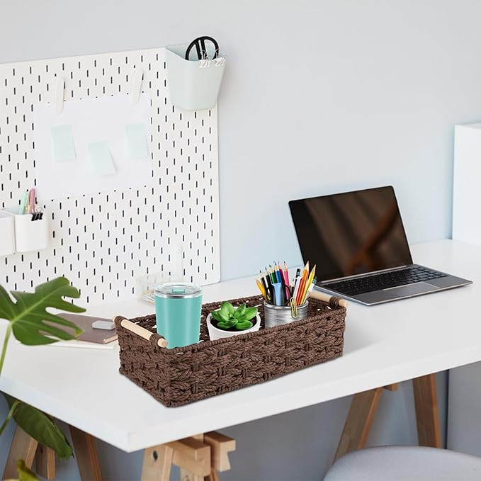 - 100% Paper Rope Material Production: OIAHOMY wicker storage basket is based on a metal frame and tightly woven with high-quality paper rope material, fully ensuring the durability of the shelf organizer; Paper rope is a 100% renewable material that protects the environment from harm