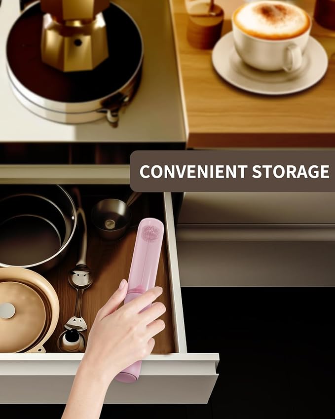 - EASY TO STORE AND CARRY: This electric milk frother features a storage tube to protect against dust and keep the whisks clean. Its lightweight and portable design allows you to easily carry it in your bag for use in hotels, offices or outdoor settings