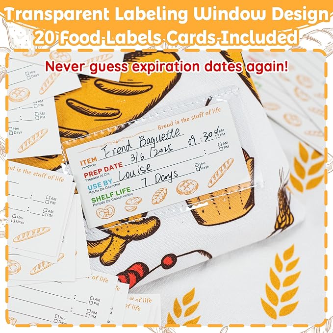 - 【Never Guess Expiry Dates Again】 The built-in labeling window and included 20 reusable label cards let you track contents, dates, and dietary notes (like "gluten-free" or "Friday Baguette") at a glance. Ideal for meal preppers or families juggling multiple baked goods