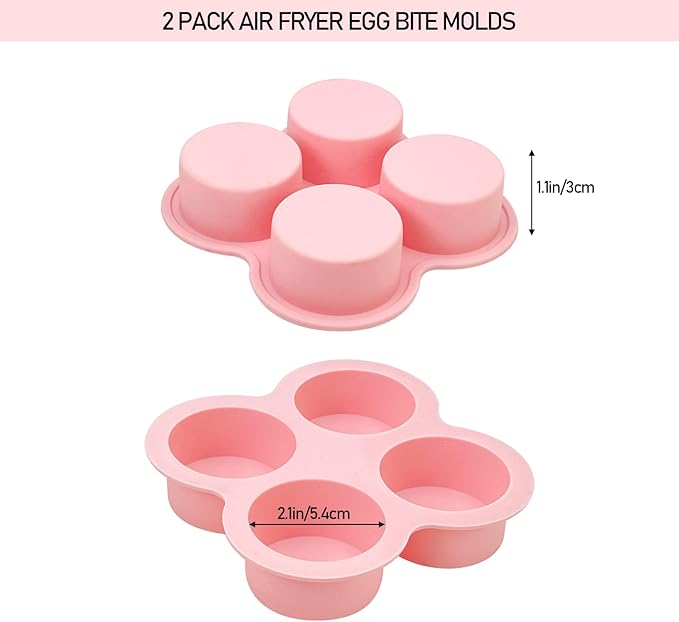 HUIKANGSHENG 2 Pack Air Fryer Egg Bite Molds, 4-Cup Silicone Mini Round Muffin Pans for Oven, Air Fryer & Pot, Reusable Non-Stick Baking Molds (Pink)
