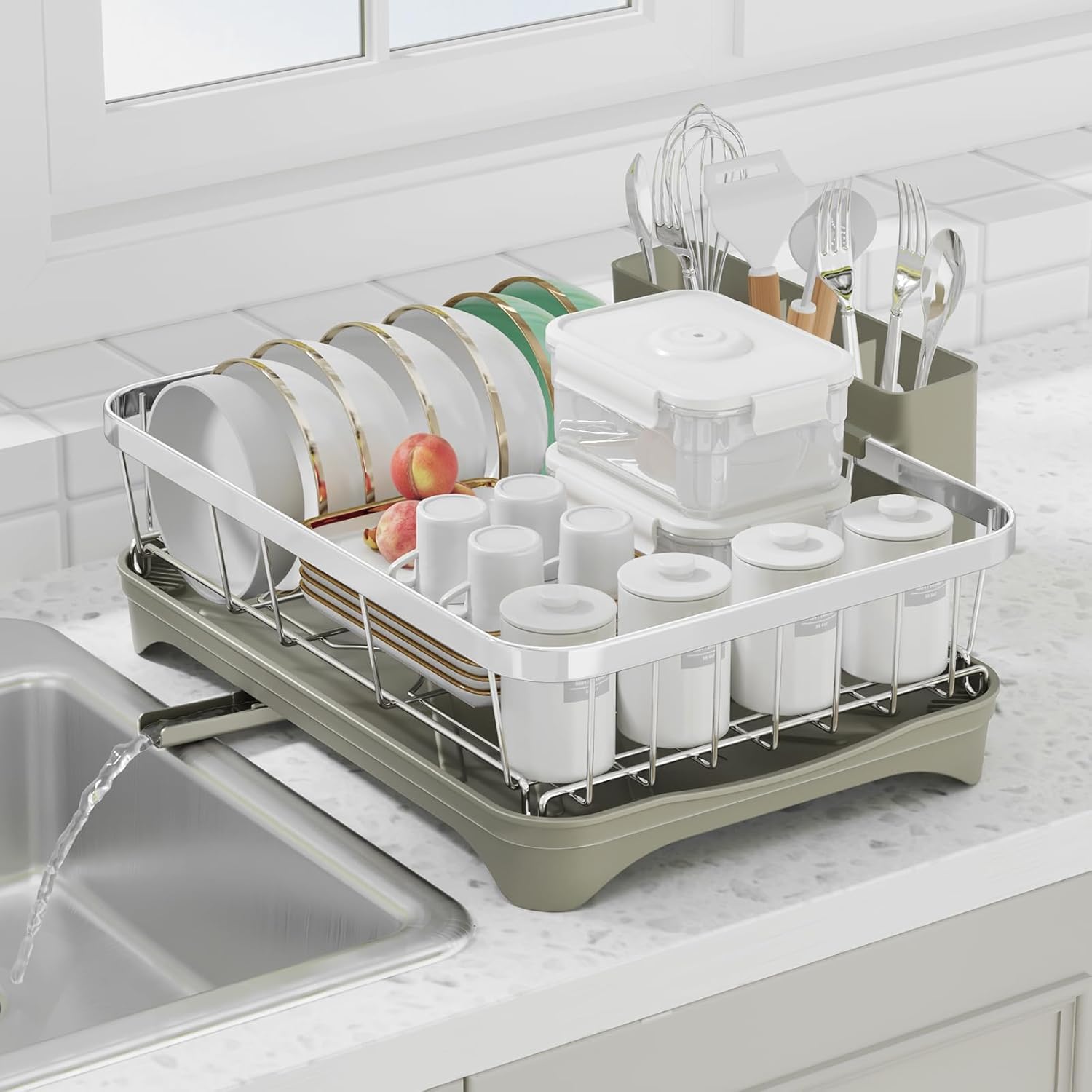 - Premium 304 Stainless Steel Dish Drying Rack :Constructed with 304 stainless steel and equipped with a drainage board, this kitchen utensil drying rack effectively resists rust and deformation. All edges are rounded and polished to prevent scratches and damage to your tableware, providing reliable protection.