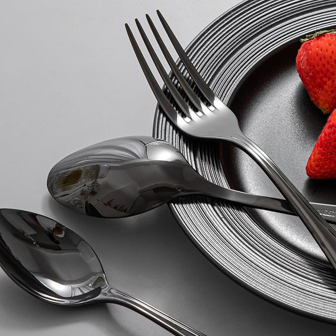 - Excellent Design & Polishing: Design of the silverware set is classic and timeless, with unique shapes and smooth lines,which can be perfectly matched with your existing flatware sets. Multiple times of hand polishing gives it shiny luster after long time use, making it a good choice for gifts. The larger size of these pieces also makes them stand out, adding an extra element of style to your table setting