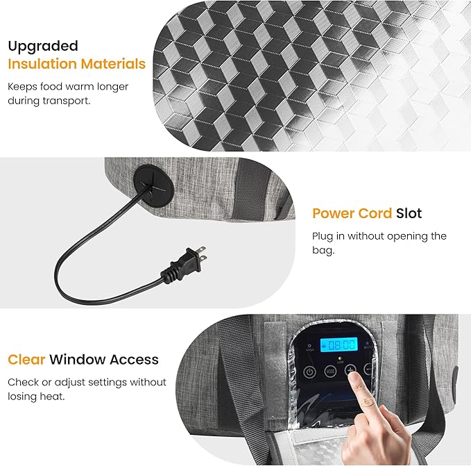 - Upgraded Materials for Enhanced Protection: The outer layer is made of water-resistant Oxford fabric, the middle layer features PE cotton for cushioning and shock absorption, and the inner layer is aluminum foil for insulation and dirt resistance. Combined with reinforced webbing, this design provides superior water-resistant, shock-resistant, and durable protection, ensuring your slow cooker stays safe and clean.