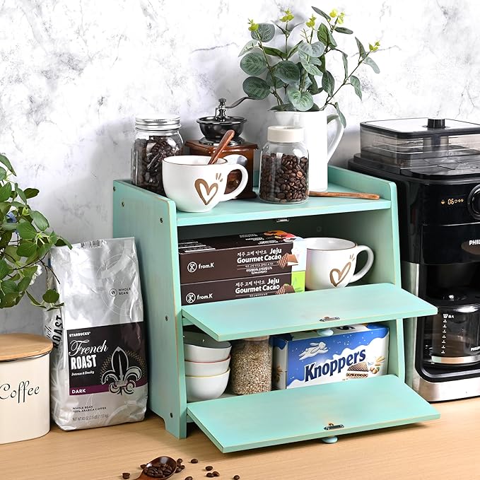- Multifunctional Organization: This storage boxes not only suitable for bread, but also for storing fruits, spices, potatoes, onions and other kitchen utensils. The potato bins for kitchen is also a great storage container for coffee, tea, and accessories. Storage containers kitchen pantry can even be used as a storage cabinet, such as food organizer, kitchen storage box, office desktop organizer to keep your life organized. Fenced flat top provide more available storage space and also prevents items from falling over.