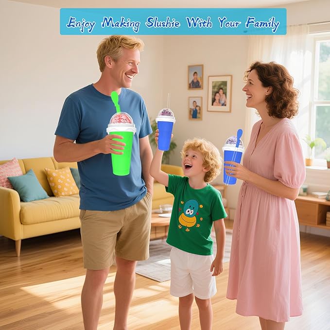 - 【Immersive feel the joy of DIY】The Frozen Magic Cup is very easy to use. First, freeze the smoothie cup 5-6 hours in advance; then pour the prepared milk, juice, soda, beverage, etc. into the smoothie cup and cover it; then just squeeze the cup with your fingers for 1-2 minutes until you see a smoothie shape. Bring you and your family the coolest summer food in the shortest time