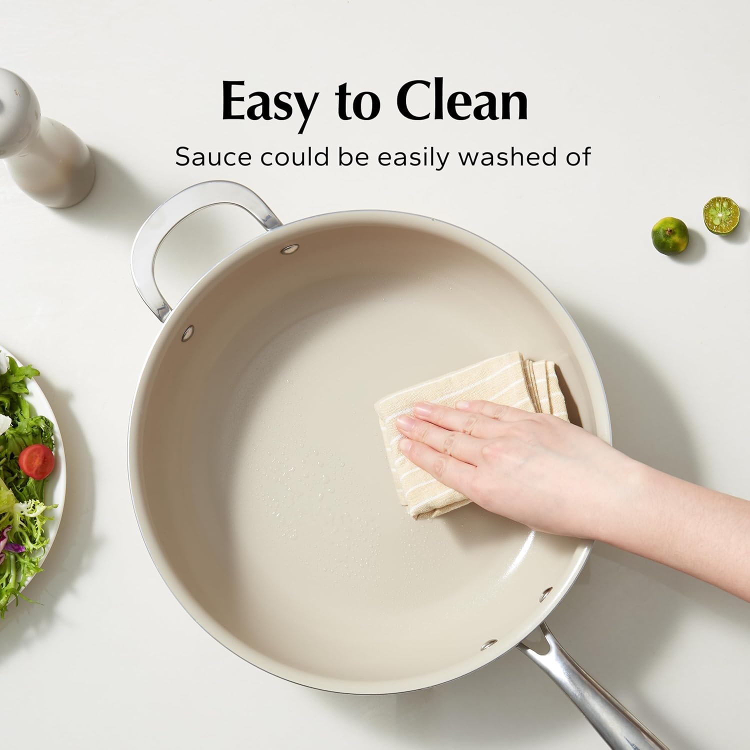 - Healthy Ceramic Coating: Redchef kitchen ceramic cookware set features a natural ceramic coating free from Teflon, PFAS, PTFE, PFOA, lead, and cadmium, ensuring safety and health. You can enjoy your cooking on cookware safely & easily