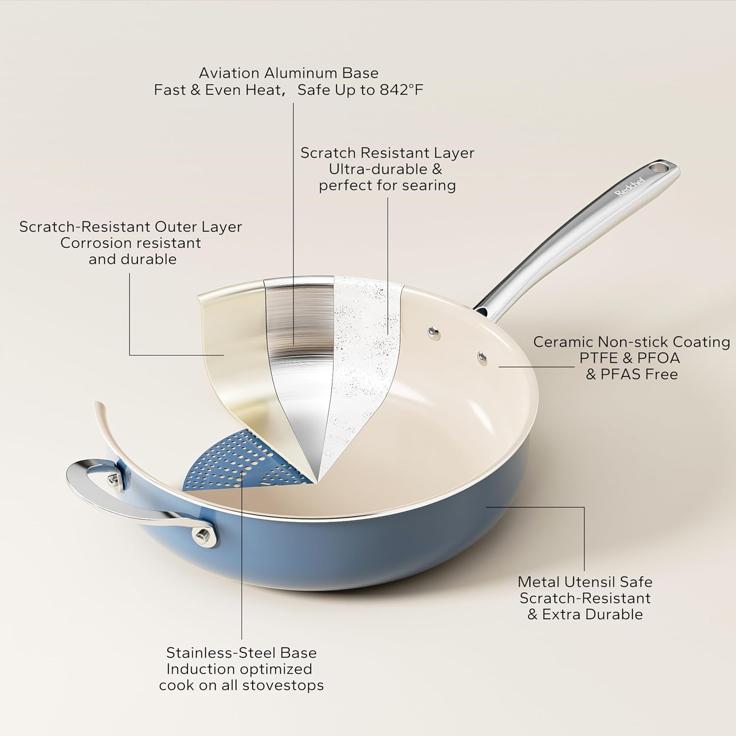 - Lasting Performance: Redchef pots and pans sets feature exceptional wear resistance, high-temperature tolerance, and superior non-stick properties, perfectly meeting users' demands for high-quality ceramic pots and pans sets