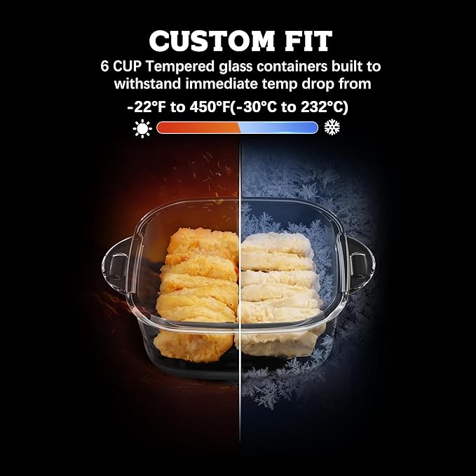 - Custom Fit: Tempered glass container is tailor-made to perfectly fit Ninja Crispi 4-in-1 Portable Glass Air Fryer Cooking System FN100 FN101. Withstands extreme temperatures from -22°F to 450°F.