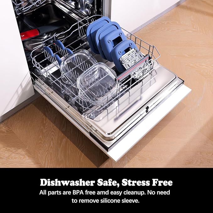 - Upgraded Silicone Sleeves & Handles: glass baking dish with lid is equipped with non-slip, heat-resistant silicone grips that make it easier to lift, safer to handle, and simpler to store.