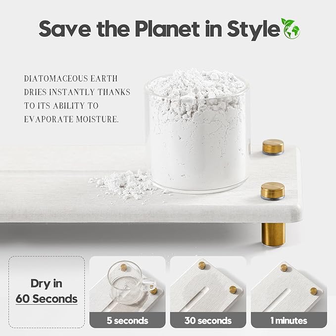 - 【Sustainable Materials】Diatomaceous earth dries instantly thanks to its ability to evaporate water. Safe, Sustainable and Long-lasting.