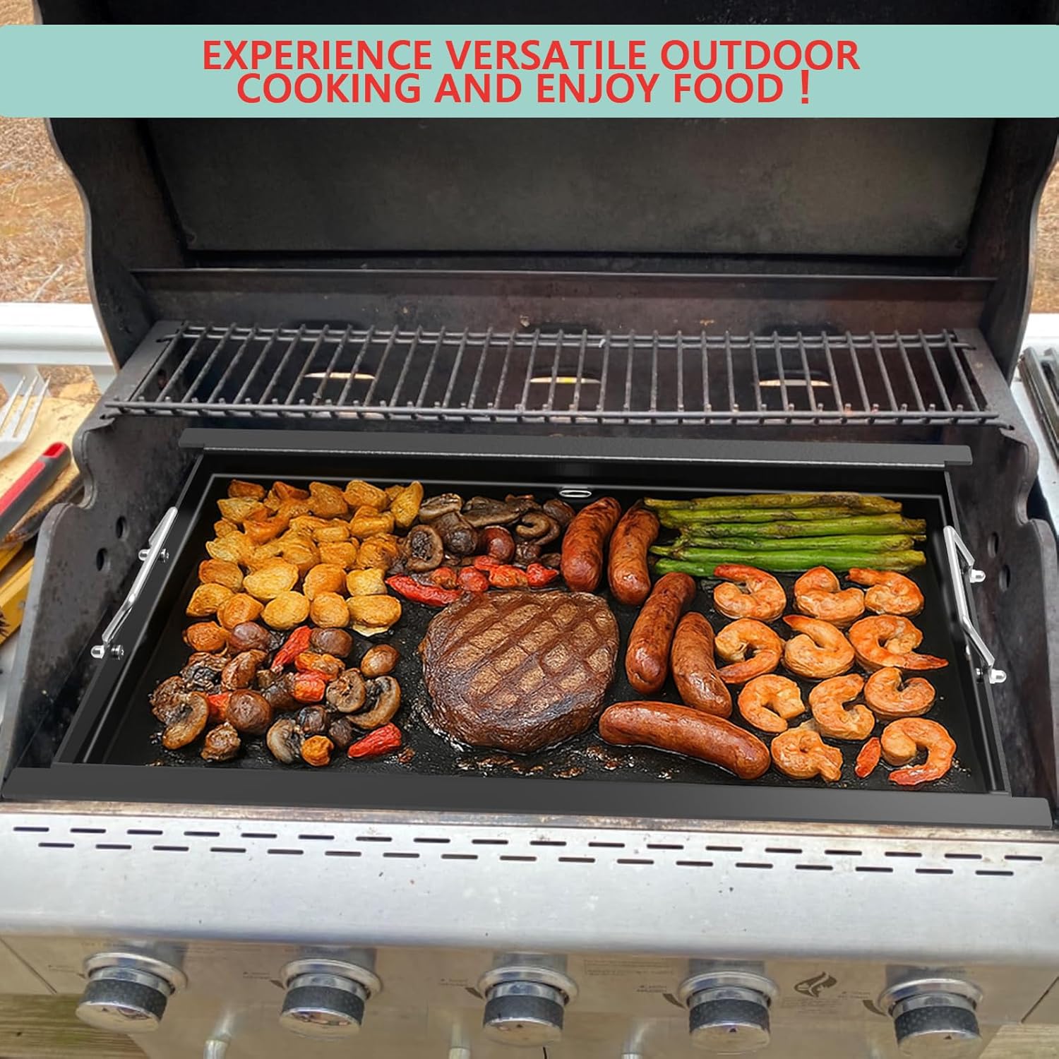 - Versatility: Experience versatile outdoor cooking and enjoy the benefits of a true flat griddle on your outdoor propane gas grill. A culinary powerhouse that revolutionizes your cooking experience both indoors and outdoors. perfect for sizzling crispy bacon, grilling juicy burgers and savory hot dogs, or even steaming and stir-frying multiple dishes simultaneously—no more waiting around for your meals!