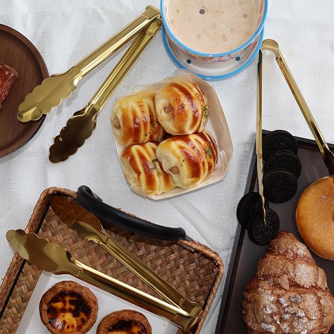 - Premium Quality Gold Tongs: These gold tongs are constructed from 100% food - grade stainless steel, ensuring safety and durability. The gold - plated surface not only adds luxury but also provides rust resistance. The thick and sturdy construction prevents deformation, and the smooth edges safeguard your hands from scratches, making them perfect for everyday use.