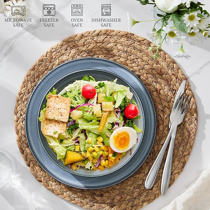 - PREMIUM & HEALTHY STONEWARE: Our dinner bowl plates are made from natural clay that free from lead and cadmium, Applied with a glossy food safe glaze, Fired at high temperatures 2340°F, resulting in a sturdy, long-lasting, scratch & chip resistant pasta plate, Healthy and safe for everyday kitchen use