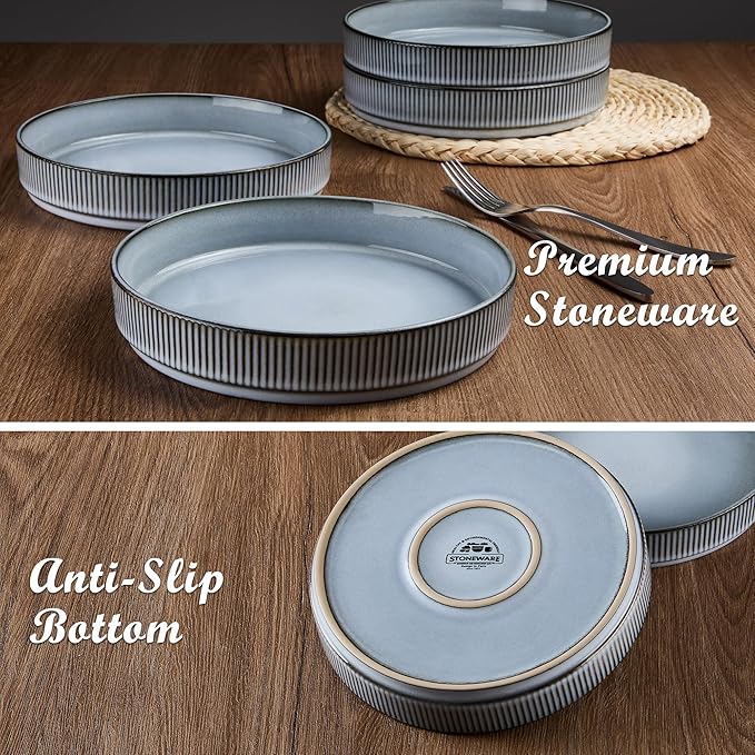 - WELL CRAFTED CERAMIC BOWLS SET: Vertical ridges and straight wall design for easy and secure holding, The unique Dusty Blue color create an elegant appeal, Match with various vibes and decorations, Smooth reactive glaze surface with no rough spot ensure hardness and prevent stains and odors, Flat bottom with anti-slip design can be stacked stably for cabinet space saving and keep organized