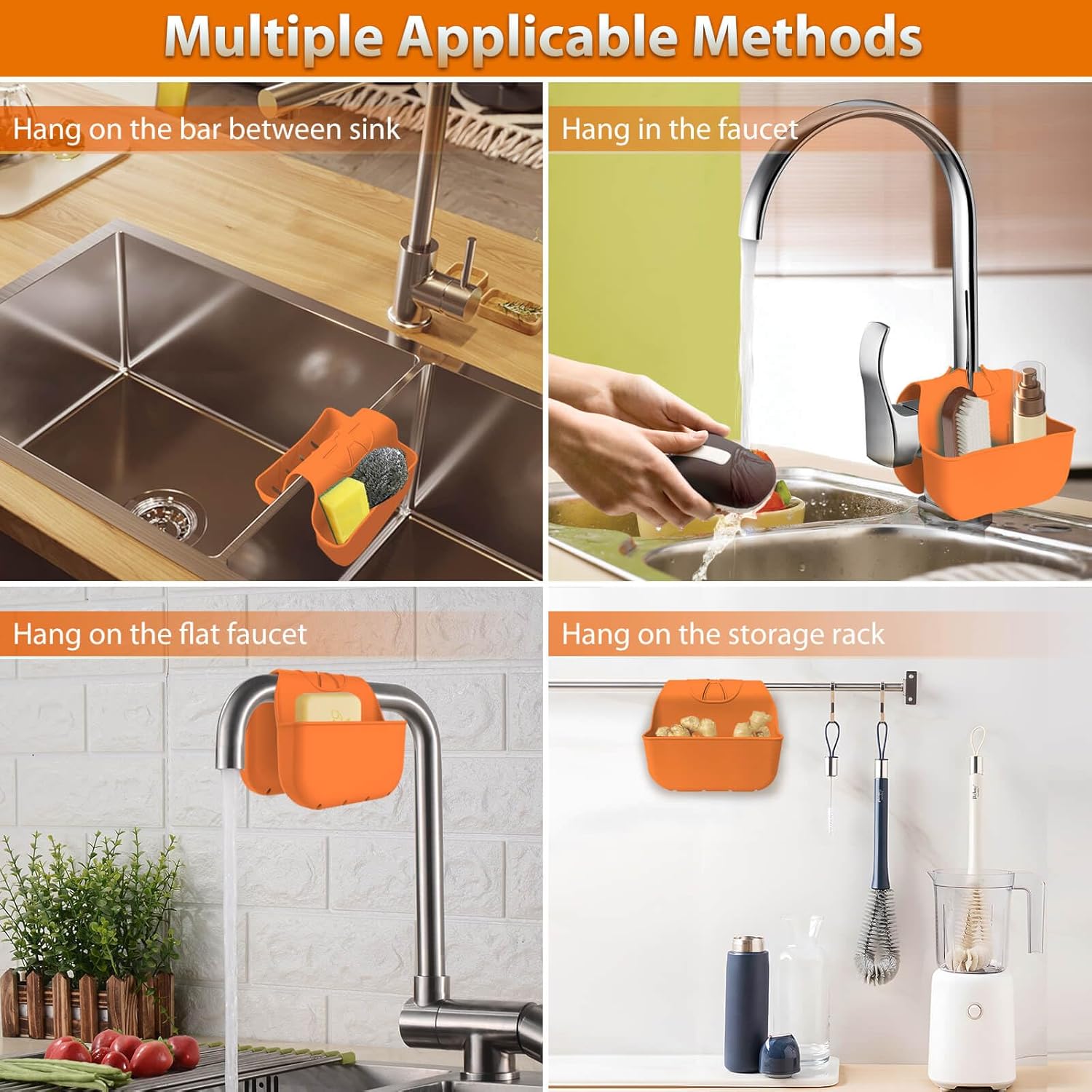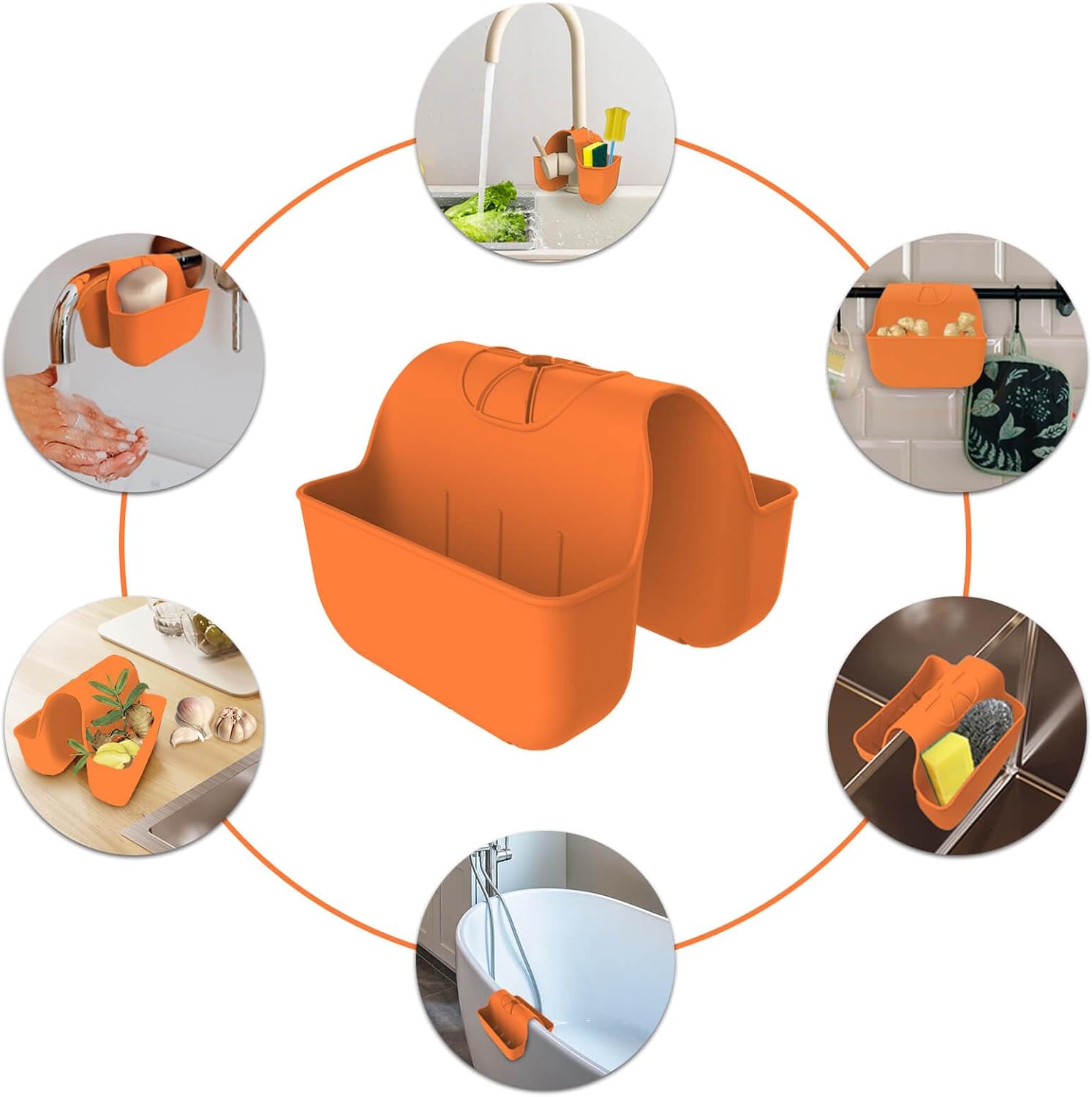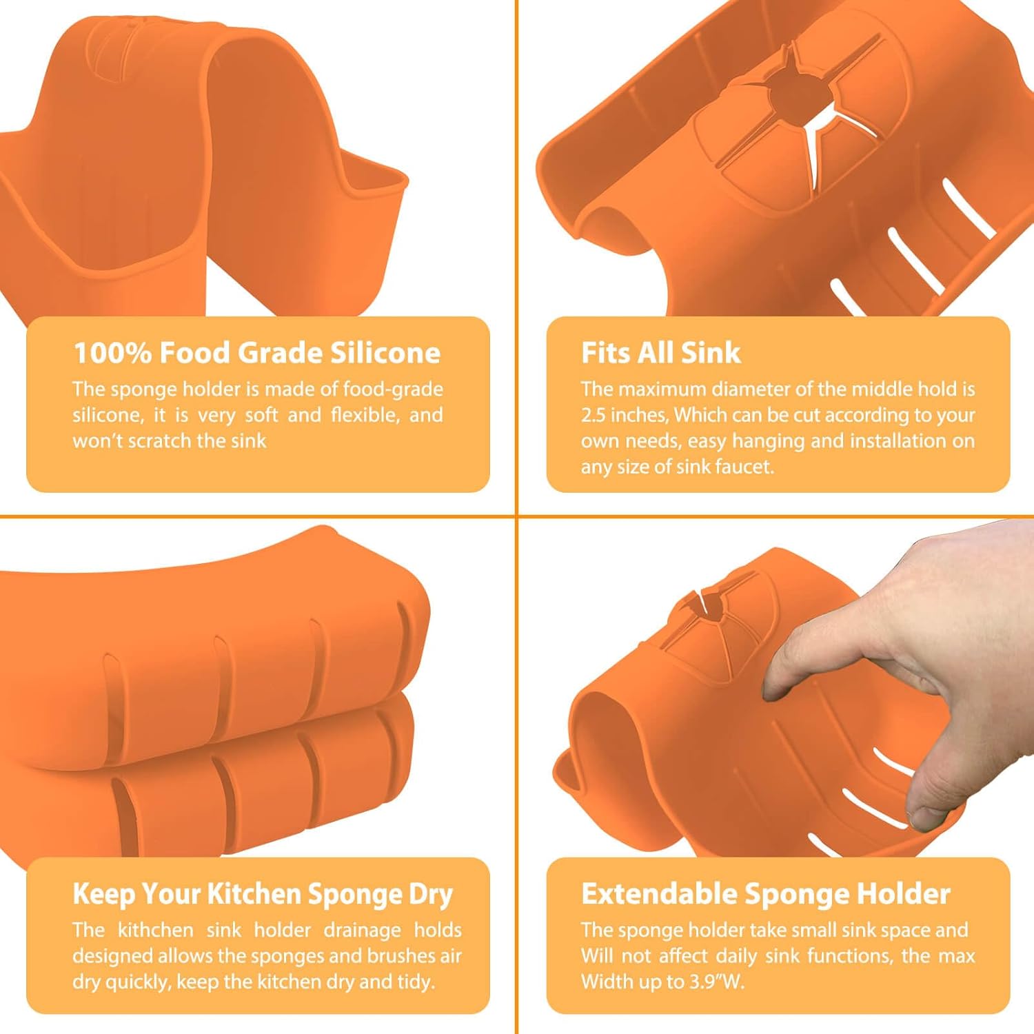 Sponge Holder for Kitchen Sink, Silicone Sink Saddle Caddy Organizer Rack, Sponges Holder Over Faucet, Hanging Kitchen Organizer Accessories Rack Basket Orange