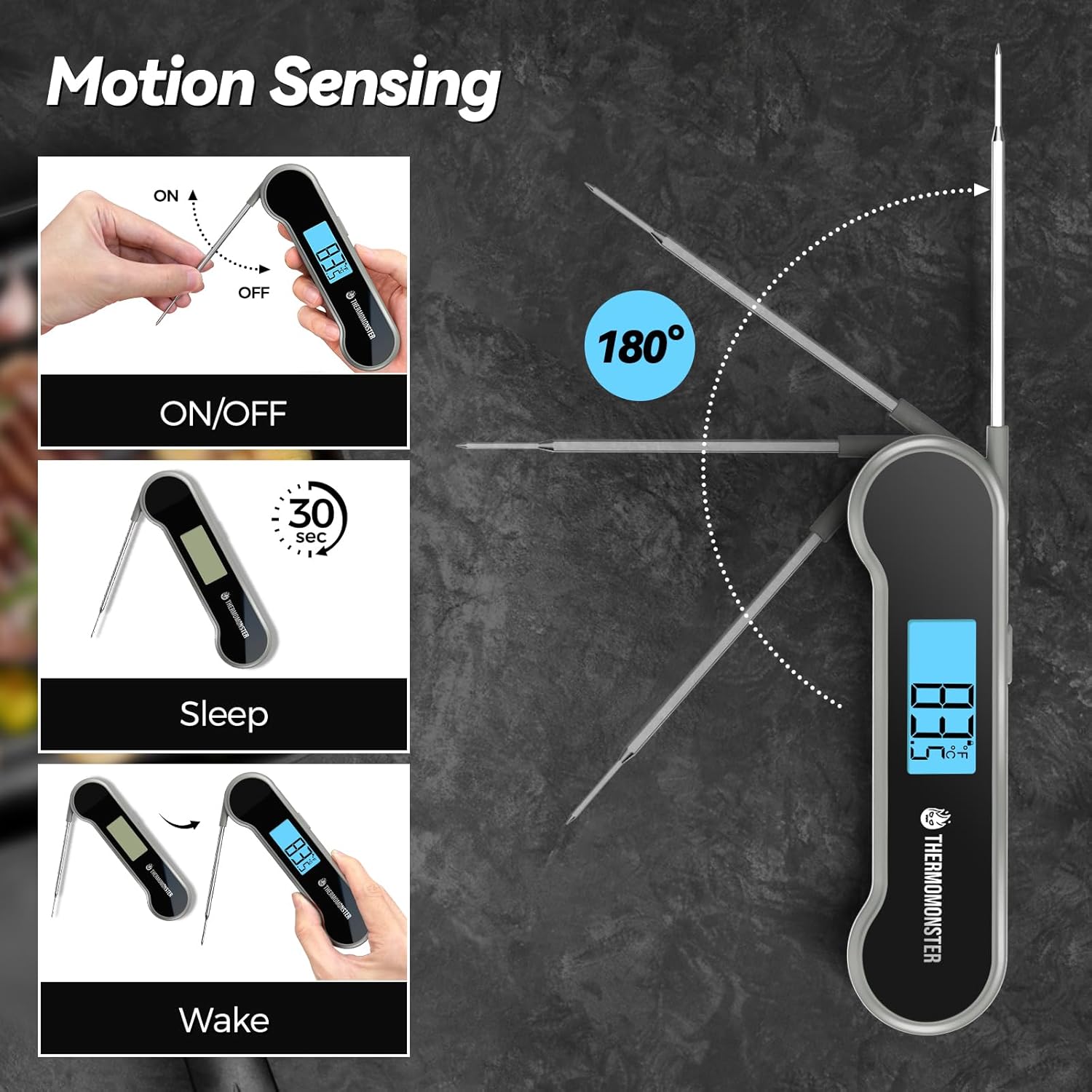 - 【Auto Flip Large LCD Display】: Features an innovative auto flip large LCD screen with exceptional brightness, this food thermometer is perfect for both left and right hand users outdoors and at night.