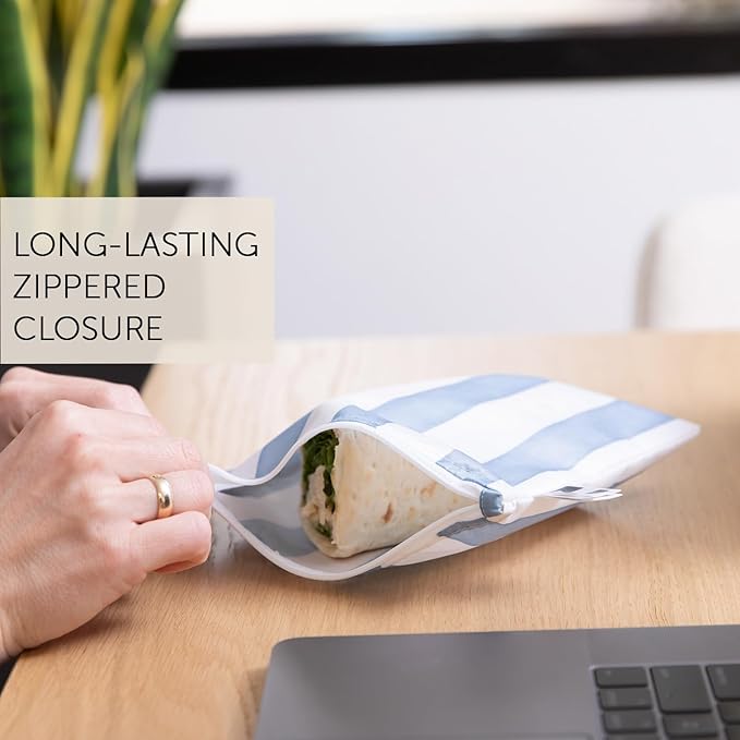 - REUSE AND REDUCE WASTE – Made from our original waterproof food-safe fabric with zipper closure; sandwich bags are large enough to fit a bagel; not just for lunch, bags make great organizers for storage and travel; stash inside lunch, purse or travel bag