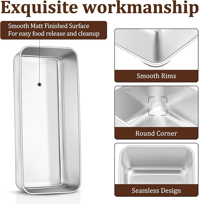 - BAKING EVENLY & FASTLY: High hardness stainless steel structure with flat bottom allows the meatloaf pan to conduct heat evenly and quickly, Deliver uniform and great baking and roasting results, Our bread pan can withstand high temperature up to 450°F, Suitable to be used in oven for various kinds of baked goods