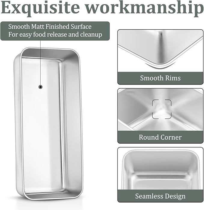 - BAKING EVENLY & FASTLY: High hardness stainless steel structure with flat bottom allows the meatloaf pan to conduct heat evenly and quickly, Deliver uniform and great baking and roasting results, Our bread pan can withstand high temperature up to 450°F, Suitable to be used in oven for various kinds of baked goods