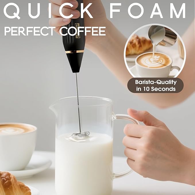- 【Perfect Gift for Home Baristas】Complete with USB cable, this rechargeable milk frother handheld makes an ideal housewarming gift.