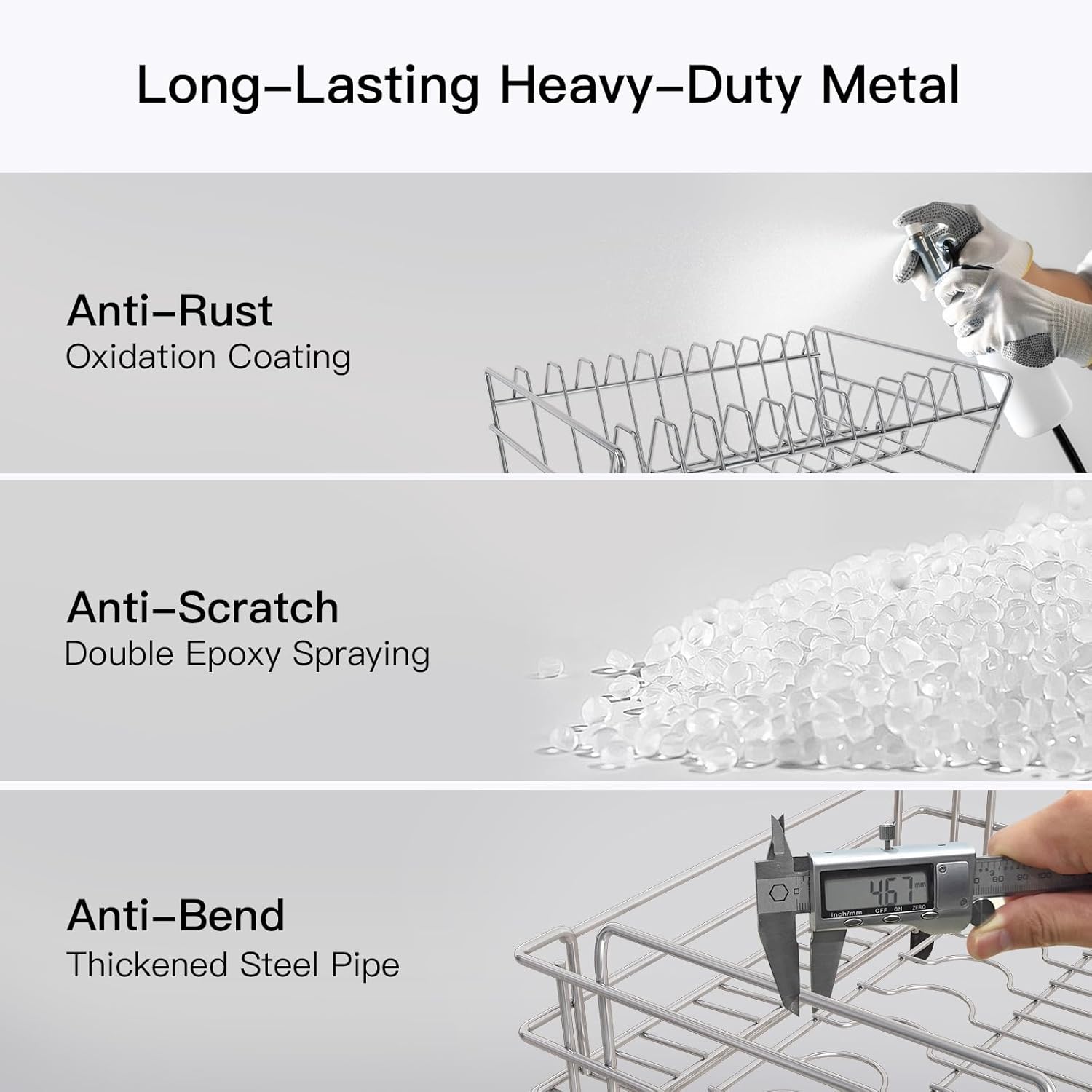 - 🔩 Rust-Resistant & Heavy-Duty Metal Dish Drying Rack: Durable metal dish drying rack with anti-oxidation coating. Withstands daily use—no bending, peeling, or wear over time