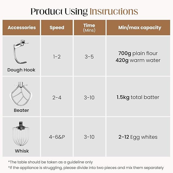 - ใ๐-๐ข๐ง-๐ ๐๐ฅ๐๐๐ญ๐ซ๐ข๐ ๐ ๐จ๐จ๐ ๐๐ข๐ฑ๐๐ซใComplete your kitchen arsenal with dough hook (for bread/pizza), wire whisk (meringues/cream), and flat beater (cookies/salad). Multi-functional solution for all mixing needs like cakes, bread, biscuits, pastries, muffins, and waffles